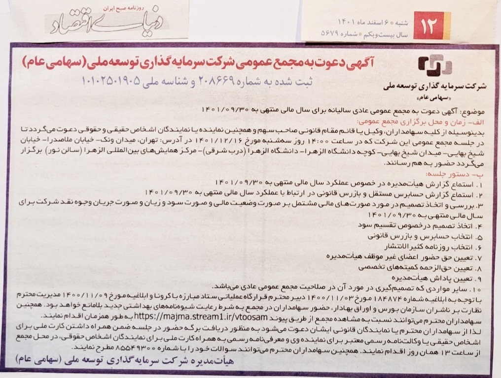 پاسخ : سرمایه گذاری توسعه ملي ( وتوسم )