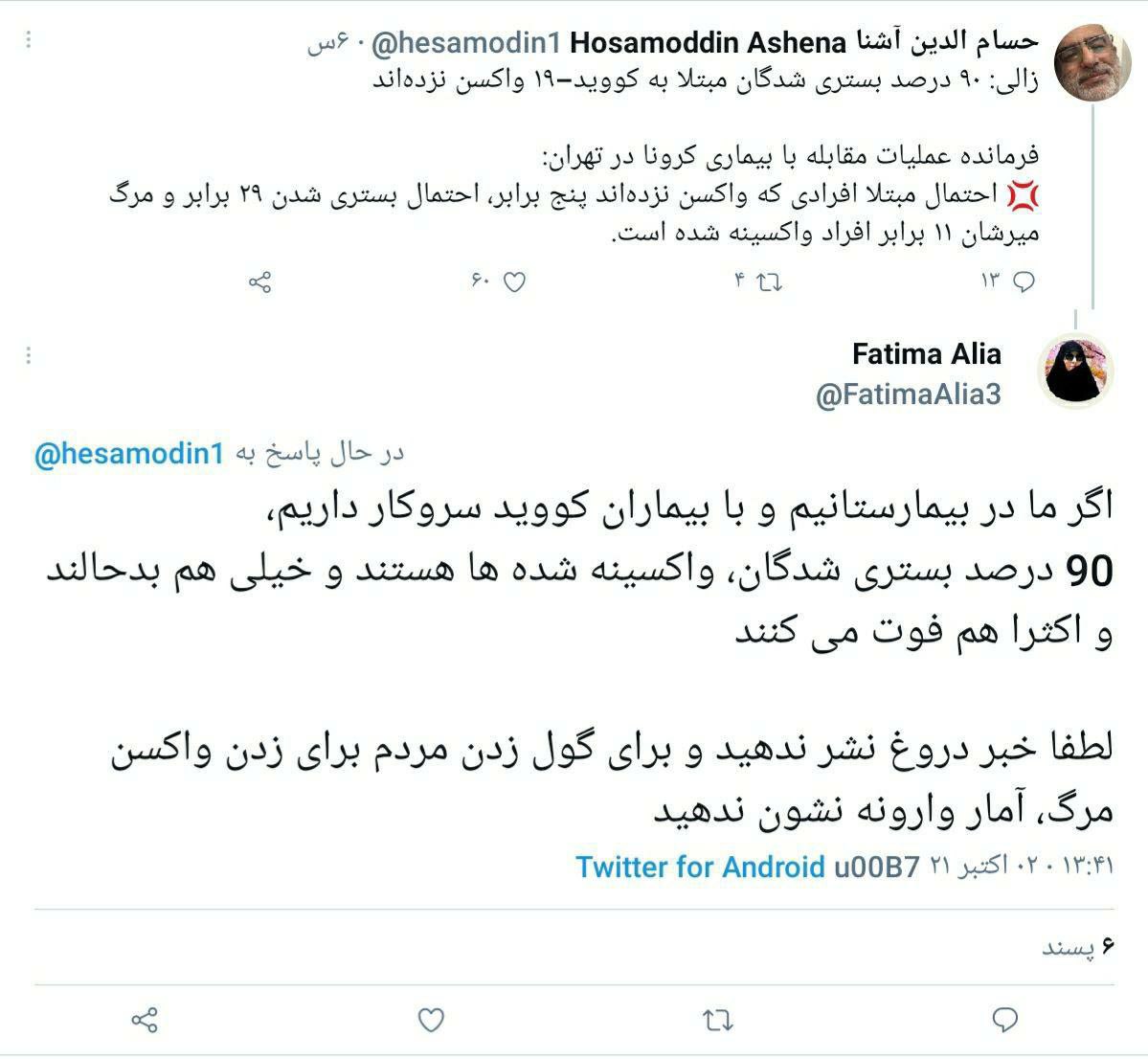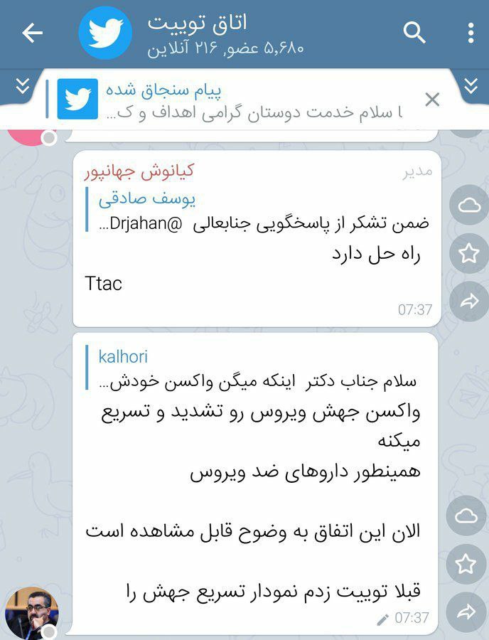 ?جهانپور، سخنگوی ستاد ملی کرونا در توییتی انتساب اسکرینشات منسوب به خود را تایید کرد و نوشت: "واکسن و داروهای آنتی وایرال سرعت جهش ویروس ها رو بیشتر میکنند، ویروس هوشمندانه در پی فرار از واکسن و داروست، این چیز جدیدی نیست خاص کرونا هم نیست."
